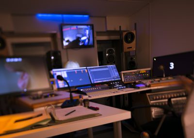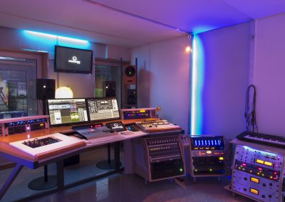 Our technical equipment combines a modern DAW system, up-to-date plug-ins and high-quality digital converters with the best analog equipment. 48 outputs (up to 24bit / 192kHz) are summed up to an analog Neumann mixer and are available for mixdown. A Lemo patch-bay allows all devices to be integrated into mix and recording. Come by and take a look at our analog equipment park, you will be thrilled.